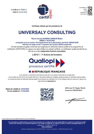 UNIVERSALY CONSULTING est un cabinet de conseil et de formation en langues des affaires, en communication, en management et en thématiques interculturelles, créé en 2023 par Sandra MAALI, une experte dans le domaine de la traduction et de l’interculturalité.